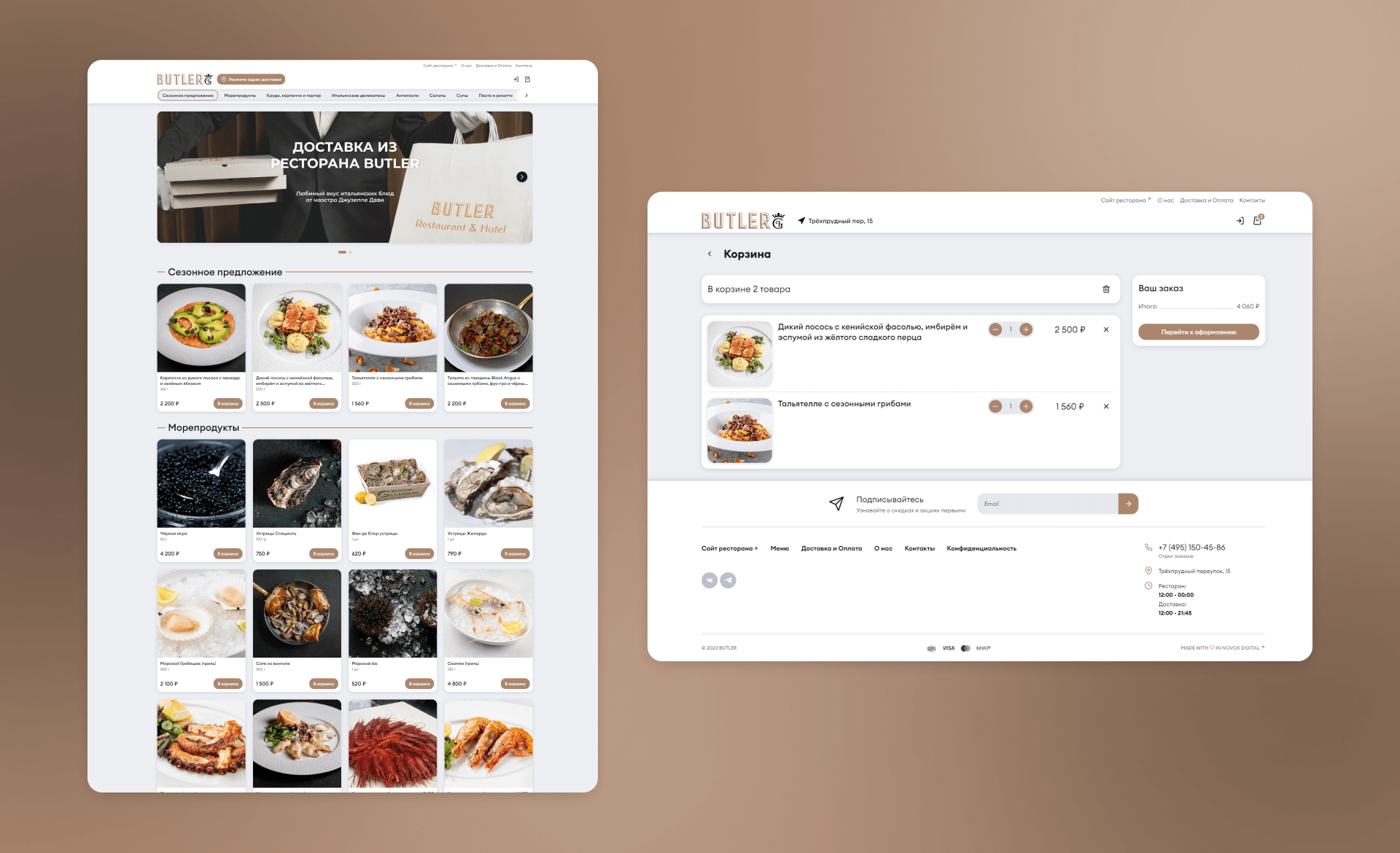 Разработать сайт доставки из ресторана, настроить уведомления о заказах на телефоне хостесс.