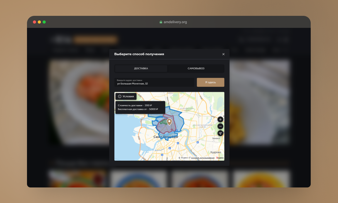 Для каждого ресторана было подключено отдельное юридическое лицо, а также настроены зоны доставки и интеграция с системой iiko.