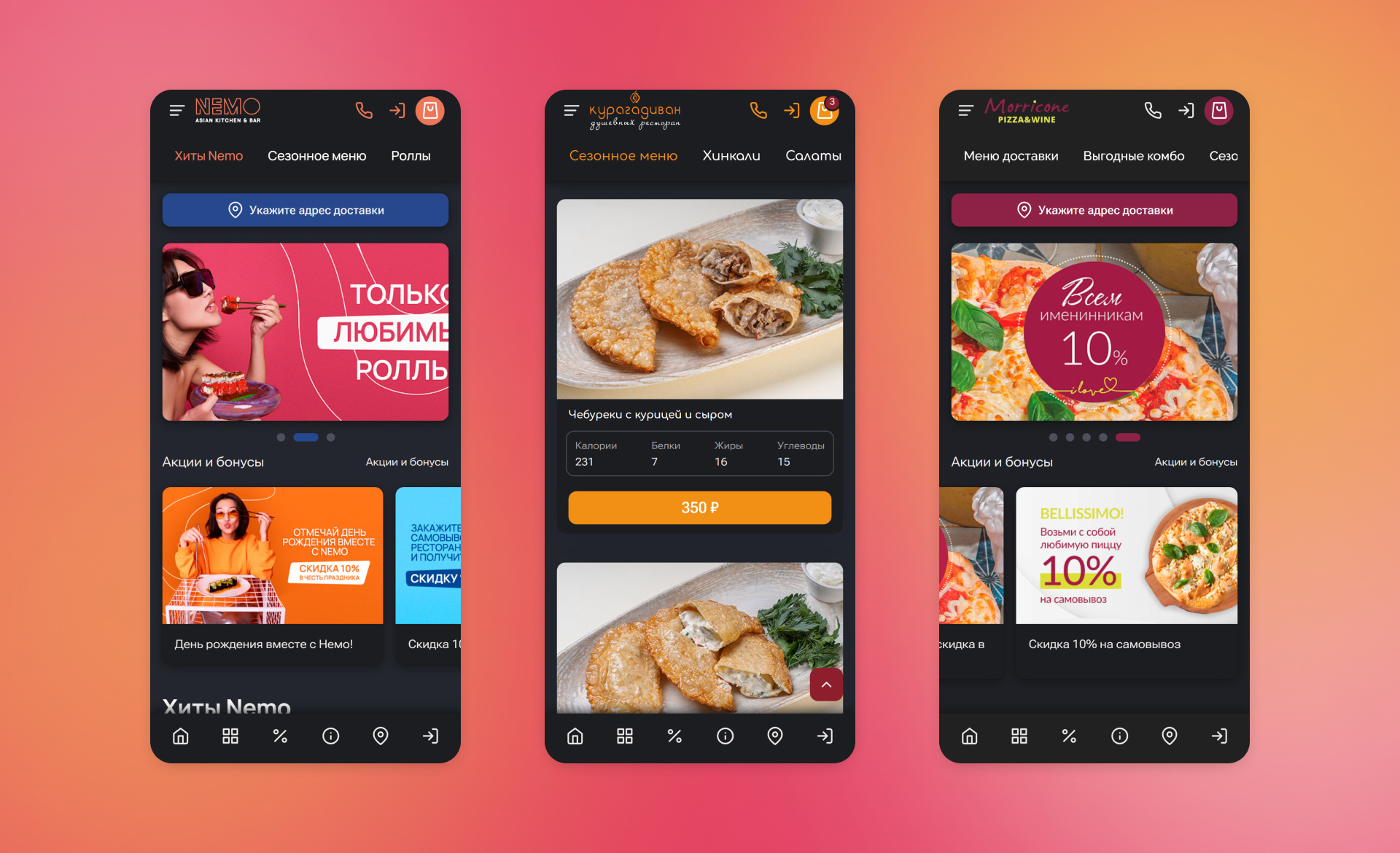 - Разработать сайт доставки еды для разных проектов одного холдинга;
