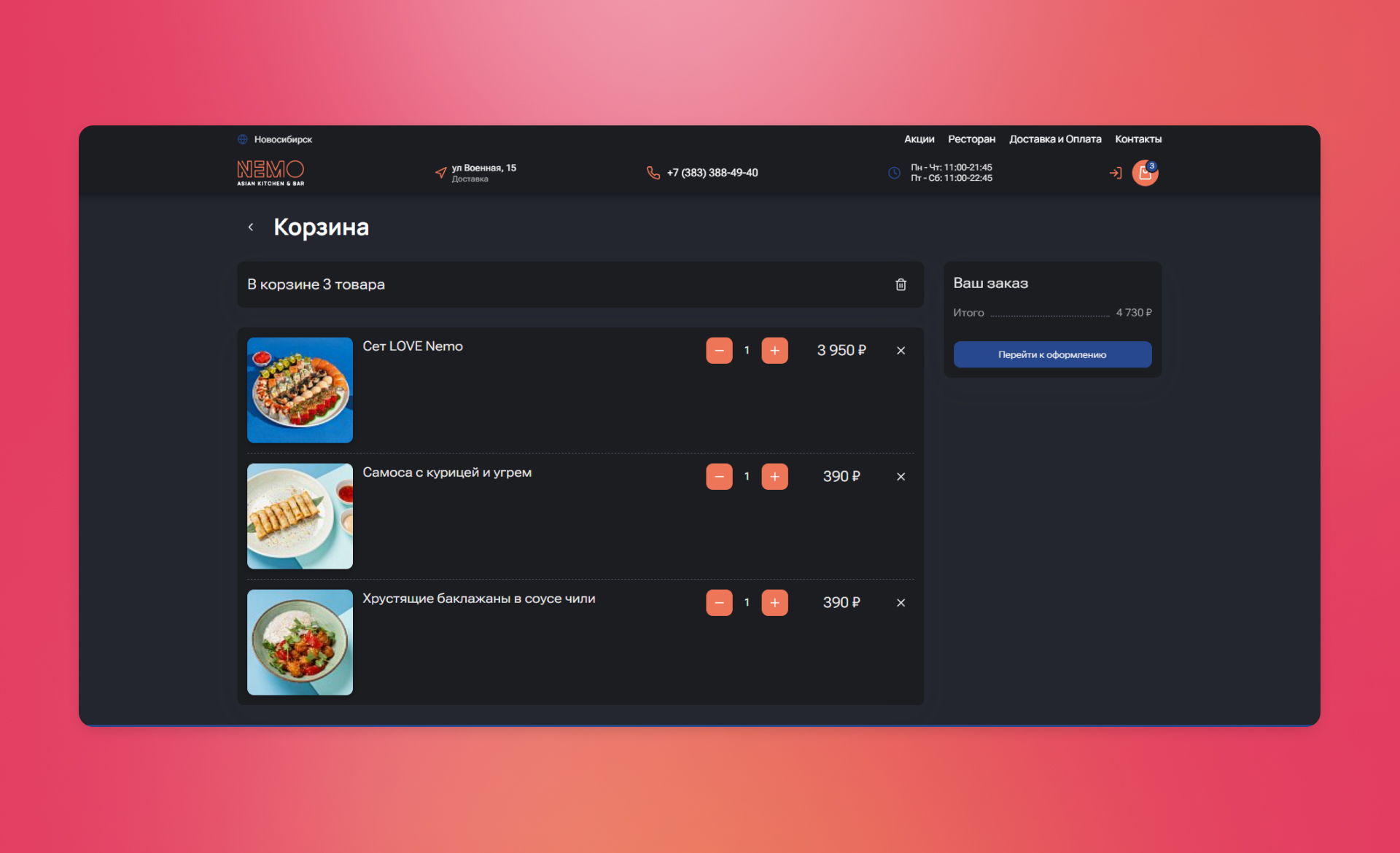 Для 3х сетей ресторанов холдинга DNK Food была реализована многосайтовость на основе нашего продукта Web Delivery. Выполнена адаптация решения под требования и корпоративный стиль каждого заведения. Каждая ресторан имеет свой уникальный поддомен и был подключен к отдельному юридическому лицу, настроены параметры доставки и интеграция с iiko. Система позволяет автоматизировать работу предприятий: управлять заказами и стоп-листами, актуализировать цены и скидки, оперативно передавать информацию персоналу и клиенту.