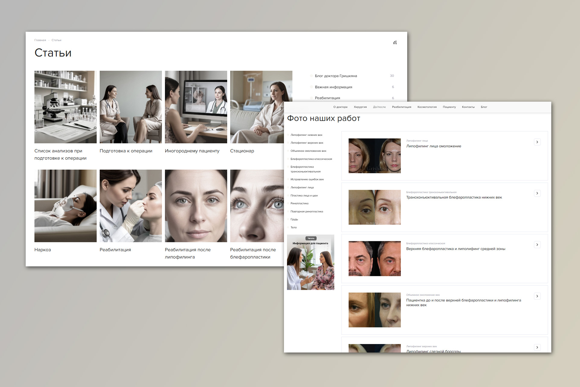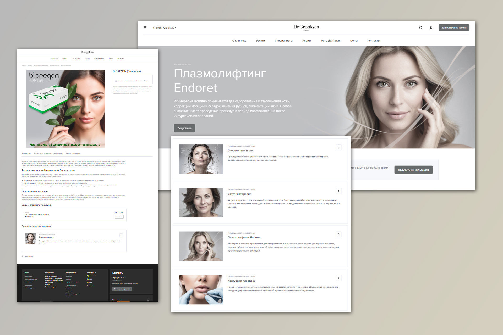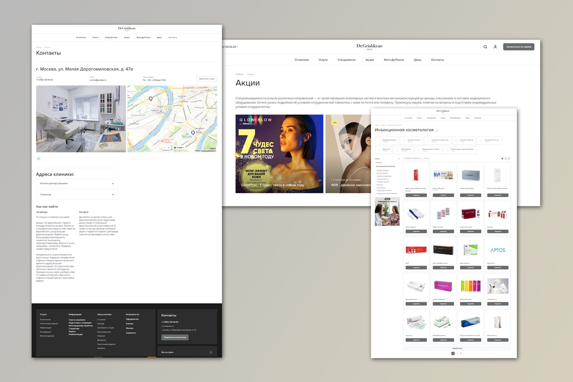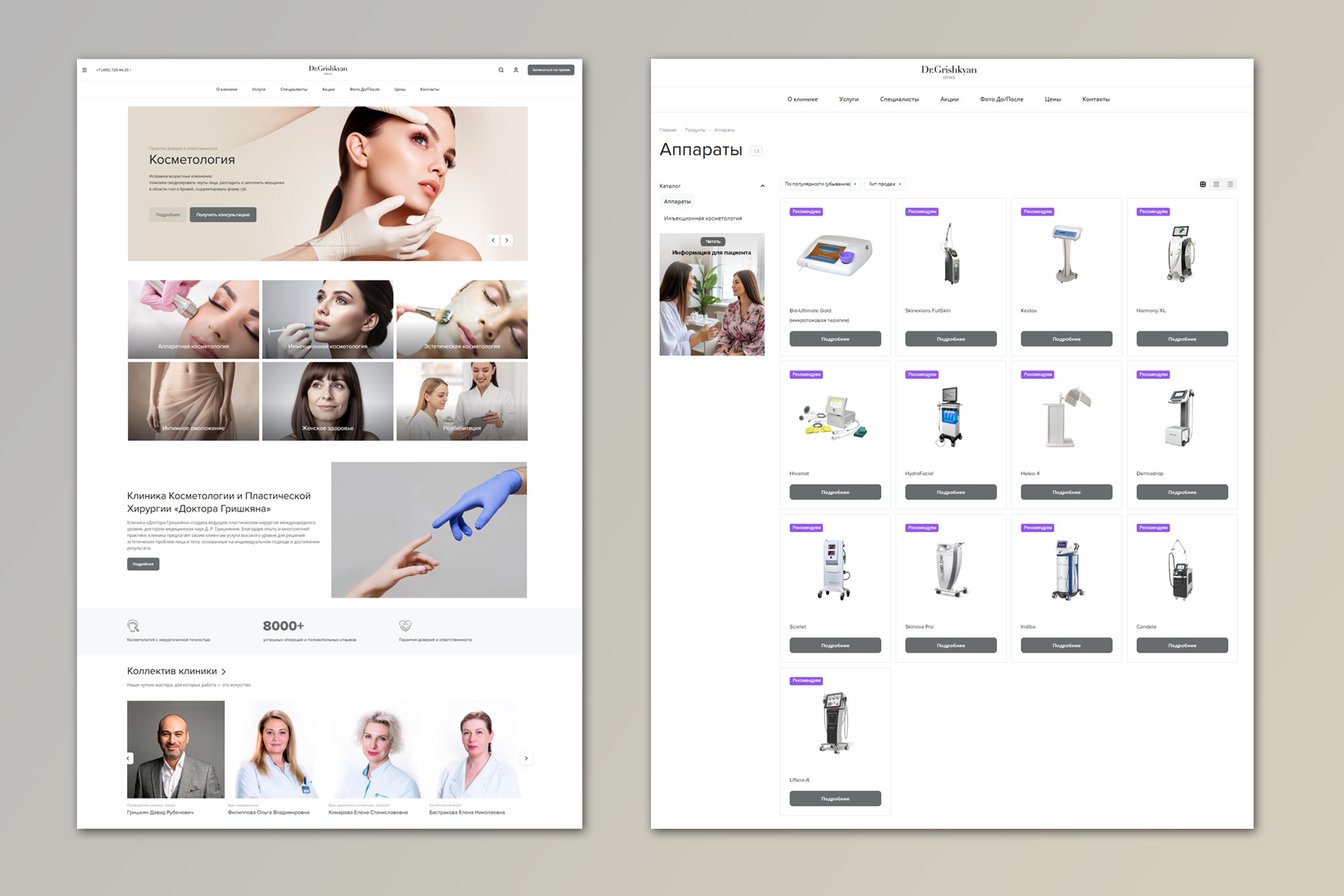 Частная клиника косметологии и пластической хирургии "Доктора Гришкяна" обратилась с запросом оперативного создания двух новых сайтов (отдельно - для направления косметологии, отдельно - для хирургии).